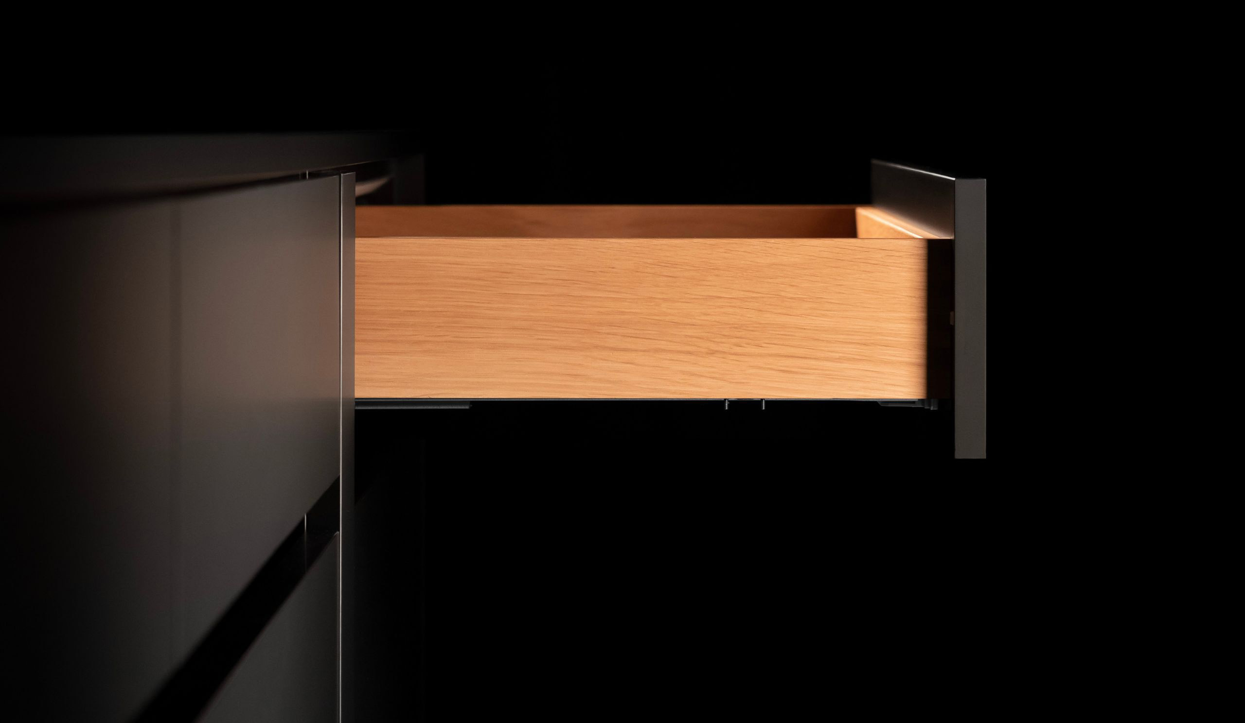 The puristic design with its striking lines, right angles and small radii gives the double wall metal drawer sides a timeless, technical and functional look. The special character of Nova Pro is hallmarked by its perfection down to the last detail and the modular system concept.