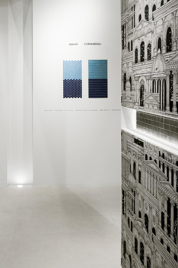 The goal was to display the distinctive traits of each brand; Appiani’s modular and versatile approach, Ceramica Bardelli’s decorative vocation, and Ceramica Vogue’s design-driven use of colour.