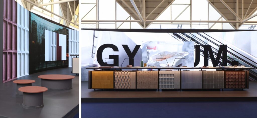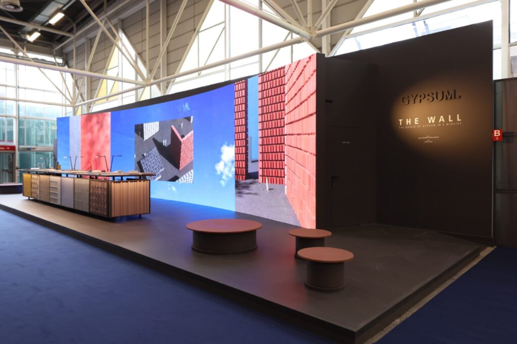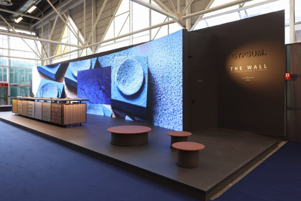 From the LED wall that engages visitors with an emotional narrative to the large atelier table showcasing materials and collections, the stand at Cersaie conveys the breadth of the Gypsum world and the company’s desire to present it in its most authentic context.