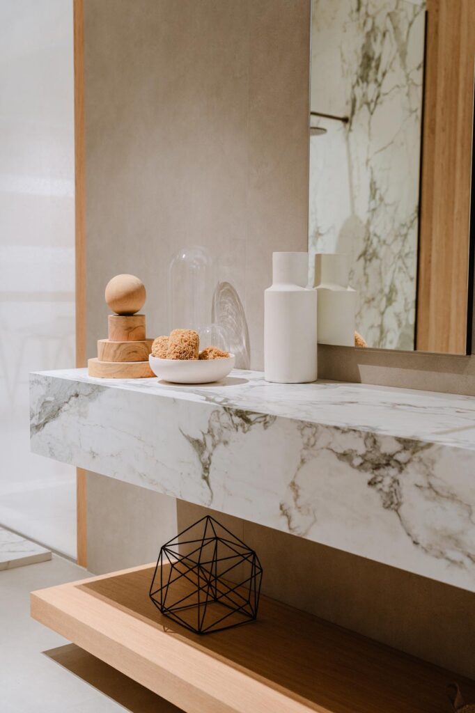 Dusk explores the dialogue between stone, concrete and design, with a sober and compact aesthetic. The collection stands out for its graphic depth and three-dimensional textures.