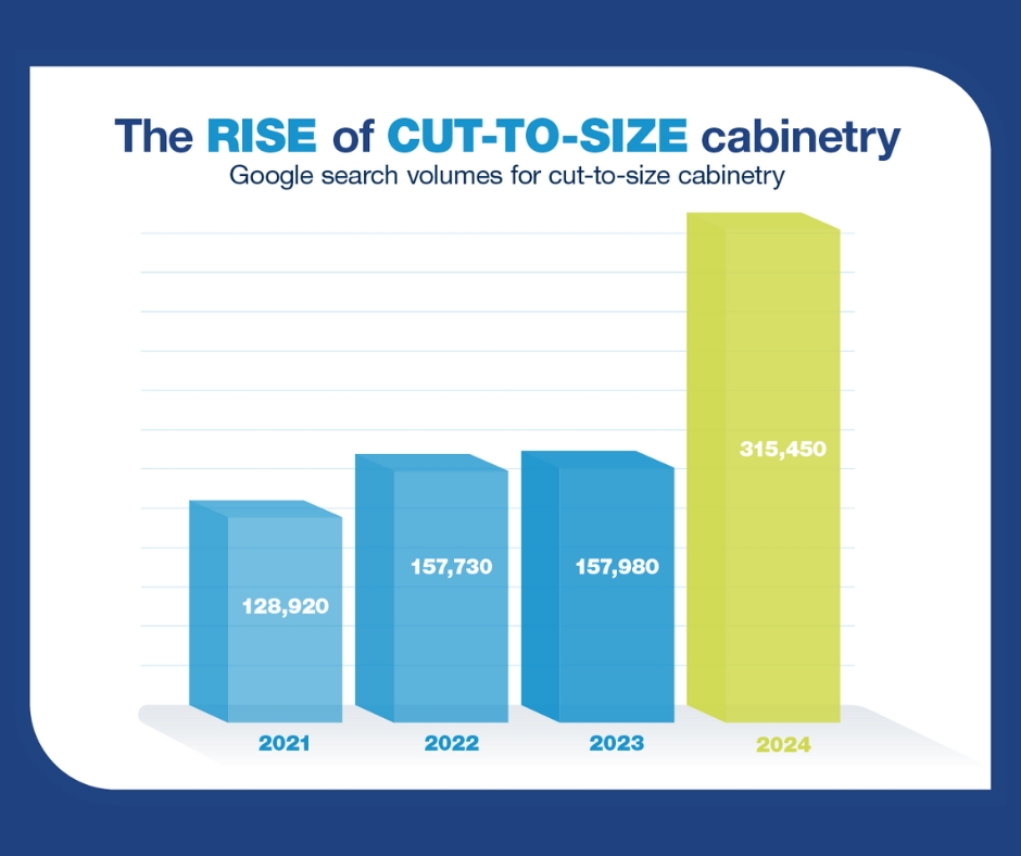 Independent Google data shows that non-branded searches for “cut-to-size cabinetry” in Australia have skyrocketed — jumping from 128,920 in 2021 to 315,450 in 2024. Builders, cabinet makers and renovators are actively searching for faster, more flexible ways to get custom cabinetry.